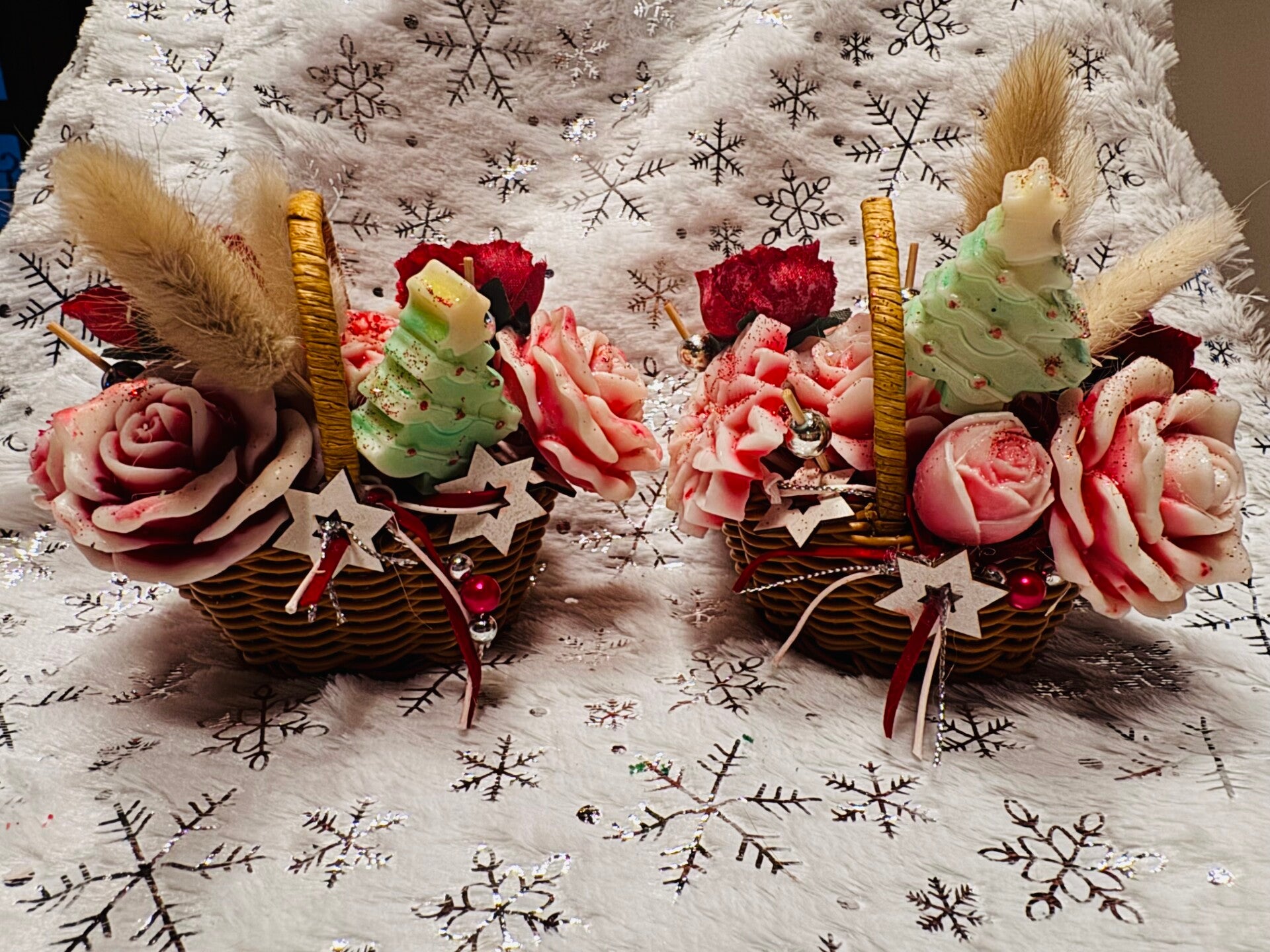 Bouquet de 7 fondants, dans un petit panier en osier, cire d'olive végétal et fragrance de Grasse Houx .